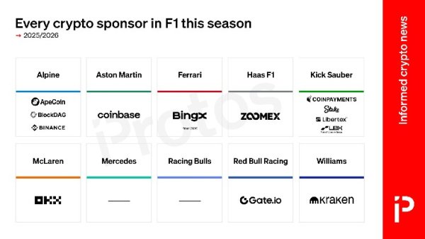 Mercedes, Racing Bulls, and Ferrari haven’t linked up with any crypto firms this year, however, Ferrari has signed a multi-year sponsorship deal with BingX that begins in 2026.